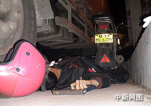 被大貨車擋住無(wú)路可逃的犯罪嫌疑人襲警時(shí)被槍擊中倒地身亡。溫?fù)P勤 攝