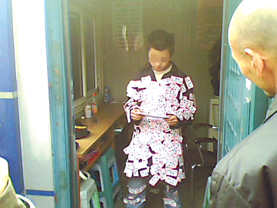 昨日下午,記者聯(lián)系上發(fā)帖者“十五阿哥”。他回憶說,拍攝照片的時(shí)間是11月7日上午10點(diǎn)半左右。當(dāng)他和同事經(jīng)過海關(guān)車站對(duì)面的市政監(jiān)察亭時(shí),發(fā)現(xiàn)門口圍滿了人。他湊進(jìn)去一看才發(fā)現(xiàn),一個(gè)“卡娃”被城管懲罰全身貼滿紙膠貼示眾!疤珎⒆拥淖宰鹦牧!薄笆灏⒏纭狈Q,當(dāng)時(shí)男孩一直低垂著頭不敢面對(duì)人群,而亭內(nèi)幾個(gè)執(zhí)法隊(duì)員卻不聞不問,各自做著自己的事情。
