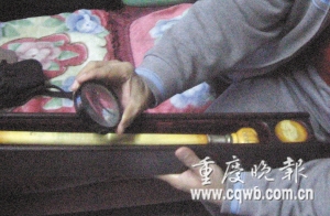 家住渝中區(qū)七星崗新德村223號(hào)的王川正,是市書(shū)法家協(xié)會(huì)會(huì)員和市工藝美術(shù)家協(xié)會(huì)會(huì)員,退休老師!斑@是一根祖?zhèn)鞯镍f片煙槍?zhuān)辄S色的象牙材質(zhì),長(zhǎng)41厘米,比拇指略粗(如圖)!蓖醮ㄕf(shuō),父親把煙槍傳給他時(shí),重復(fù)祖父訓(xùn)誡:無(wú)論多大家業(yè),千萬(wàn)莫吸鴉片。為增加象牙煙槍的收藏價(jià)值,半年前,王川正決定在煙槍上刻出鴉片戰(zhàn)爭(zhēng)的歷史!拔也殚喆罅渴妨,湊齊13篇林則徐嚴(yán)禁鴉片奏案、虎門(mén)銷(xiāo)煙圖等,用20倍放大鏡和比繡花針小10倍的刻刀,每天堅(jiān)持刻畫(huà),如今終于完成。”王川正說(shuō),近兩萬(wàn)字的禁煙史已刻上煙槍上長(zhǎng)12厘米長(zhǎng)、寬1.5厘米的面積。
