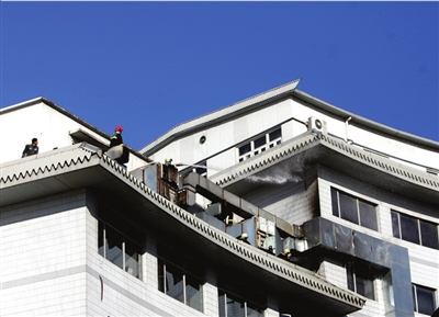 昨天上午9點(diǎn)40分,大廈院外仍停著數(shù)輛警車和消防車,保安阻止無關(guān)人員進(jìn)入院內(nèi),百余人站在中天石酒店大堂和院子內(nèi),酒店大堂還有較重焦煳味。大廈一層中部一間屋子外墻被熏黑,現(xiàn)場(chǎng)已無明火。院內(nèi)垃圾站一員工稱,西客站郵件處理中心一層廚房著火,火苗竄出屋外并燒至煙道。