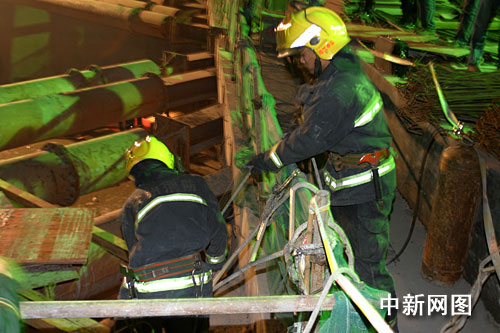 杭州市公安消防局迅速在現(xiàn)場成立指揮部,出動(dòng) 200余名消防官兵、25輛消防車及移動(dòng)指揮車、應(yīng)急照明車,組織官兵通宵達(dá)旦開展救援工作。15點(diǎn)34分,首批消防救援力量蕭山中隊(duì)、市北中隊(duì)6輛消防車已到達(dá)現(xiàn)場。官兵立即分兩組對(duì)現(xiàn)場進(jìn)行搜索,對(duì)坍塌區(qū)域內(nèi)車輛進(jìn)行逐一搜查。另一組在施工坍塌區(qū)進(jìn)行現(xiàn)場搜救被埋壓,并成功救出多人。由于工地結(jié)構(gòu)性坍塌造成自來水鋼管斷裂,大量水涌出淹沒事故現(xiàn)場。鑒于當(dāng)時(shí)水位較高且部分車輛已被完全淹沒的狀況,消防部門立即安排特勤一中隊(duì)2名蛙人攜帶水下照明燈具深入水下,對(duì)被困人員情況進(jìn)行再次搜尋,并對(duì)倒塌區(qū)域水深度進(jìn)行實(shí)地測量。同時(shí)先后調(diào)集20臺(tái)手抬泵,在坍塌區(qū)域周邊搭建抽水平臺(tái)進(jìn)行作業(yè);另調(diào)集15臺(tái)潛水泵、6臺(tái)泥漿泵實(shí)施高密度不間斷抽水作業(yè)。