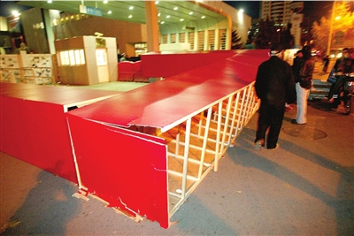 昨天下午,中國國際展覽中心(下稱國展)東門外,一個珠寶展會的木質(zhì)展板被風(fēng)吹倒,將一名過路女子砸傷。