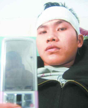 就在第二個電話打出不久,一名小偷抽出隨身攜帶的匕首,趁大家不備對準人群一陣亂舞,企圖掙脫眾人的圍困逃跑。由于事發(fā)突然,所有人均沒有警覺,致使現(xiàn)場抓捕小偷的吳偉、劉永強、李勇等6人受傷。居民阮三左手掌被刺穿,左手中指肌腱被挑斷;車主吳偉更是身中四刀,第四刀直插心臟,幸好手機裝在左胸上衣口袋內(nèi),刀尖在手機的金屬后蓋上刺出一個凹槽。