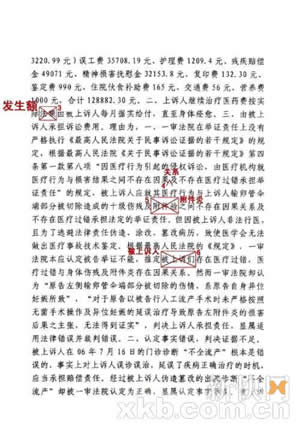 記者在判決書掃描件中的確發(fā)現(xiàn)不少筆誤,比如把“導(dǎo)致”寫成“導(dǎo)治”、“人工流產(chǎn)”寫成“工人流產(chǎn)”、“附件炎”寫成“附件驗(yàn)”和“附件鑒”、“被上訴人”寫成“被上訴們”、“認(rèn)為”寫成“真?zhèn)巍,“拒查”寫成“?jù)查”、“整理”寫成“整體”、“人流史”寫成“人流使”等。