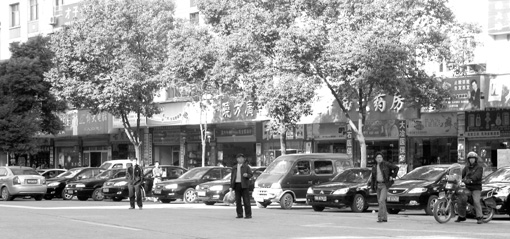在大冶街頭,記者并沒有找到“文明冶人”張貼的“尋官啟事”,卻發(fā)現(xiàn)了另外一個(gè)“奇特”的現(xiàn)象:大冶市交通局對(duì)面的人行道上,一字排開停放了11輛轎車,而路面上沒有任何停車標(biāo)志。