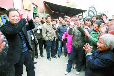 前天上午11時許,鄭州市溝趙辦事處牛寨村委會門口,村民們踮起腳尖,看新當(dāng)選的村主任長啥模樣。
