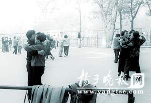 很巧的是,南京大學教攝影的謝白老師寄給本報的老照片里,也有一組關(guān)于“交際舞”的。那是在80年代后期90年代初,彼時“交際舞”早已不是青年男女用來交友、展示青春釋放活力的時髦玩意,越來越多的中老年人開始喜歡上了這種能夠舒緩身心愉悅性情的活動,于是“交際舞”開始演變成一種全民健身式的運動項目。在此背景下,上個世紀80年代末的幾個清晨,謝老師在南京的和平廣場、南大操場等地,留下了許多中老年男女“聞雞起舞”的愜意身影。(張磊)