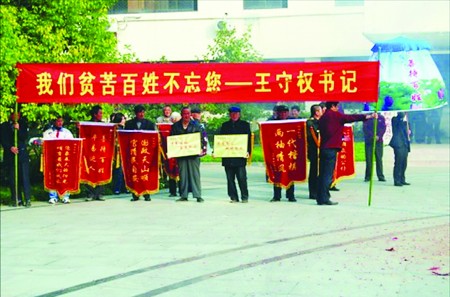 百姓自發(fā)送書記,錦旗、萬民傘、清官旗齊了。
