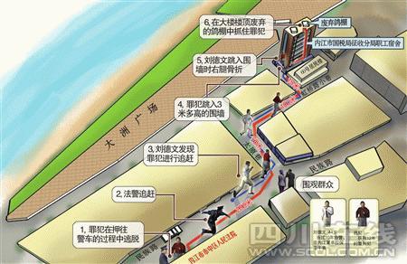 此時(shí),劉德文才發(fā)現(xiàn)自己孤身一人,追逃民警尚未到達(dá)。“決不能讓他跑了!”未及多想,他一頭鉆進(jìn)小巷,逃犯的身影再次出現(xiàn)在視線內(nèi)。“站住,你跑不掉的!”就在劉德文快速靠近時(shí),慌不擇路的逃犯突然放棄小巷,縱身跳下一旁3米多高的圍墻,進(jìn)入全封閉的內(nèi)江市國(guó)稅局征收分局職工宿舍大院。