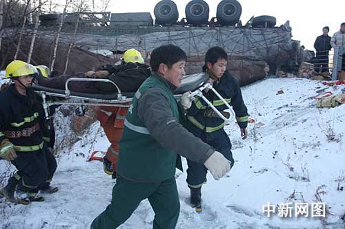 方正縣消防大隊的消防官兵立即趕到現(xiàn)場,使用液壓破拆工具立即對溝中變形的大貨車車體破拆,由于貨車車駕駛室已經(jīng)被撞癟,駕駛員在什么位置都看不到,這給救援的消防戰(zhàn)士帶來很大困難,消防戰(zhàn)士從先后從車內狹小的空間救出2人。隨后,交警找來吊車將變形的車體吊起,消防戰(zhàn)士又使用破拆工具將變形的車體破拆開,此時駕駛員已被擠死在變形的車內。
