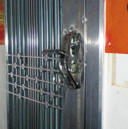 記者沿樓梯上到了這個房間,看到它的門鎖已經(jīng)壞了,估計是行動時警察破門時撬壞的。鐵門下面擺放著兩對拖鞋,記者試著敲了兩下門,里面有個女人來開門。當(dāng)記者問她“前天晚上警察搜出毒品的是不是在這個房間”時,對方用電白土話連說:“不知道!”記者再下到一樓,兩個正在散步的婦女向記者確認:出事的就是那個房間。