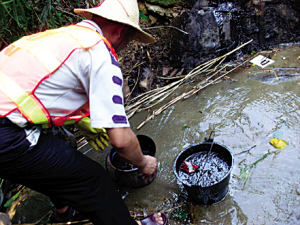 11月30日20時(shí)41分,深汕西路政部門接到惠州交警支隊(duì)高速公路一大隊(duì)信息,在深汕高速公路西行K338+800m處有兩輛油罐車排放液體污染物。路政人員隨即趕到現(xiàn)場(chǎng)。當(dāng)時(shí),嫌疑人王會(huì)增、王增國(guó)等四人正向附近河道排放污物。路政人員立即通知惠陽(yáng)區(qū)公安部門和惠陽(yáng)區(qū)環(huán)保局。隨后,王會(huì)增等四人被民警帶走,暫扣作案車輛。目前,案件仍在調(diào)查當(dāng)中。