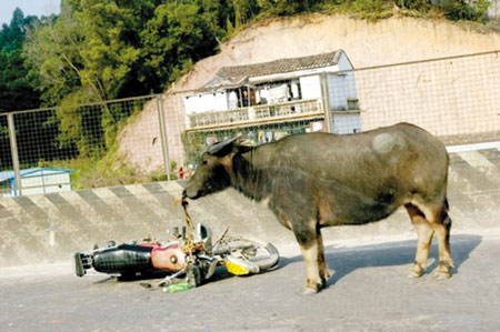 前天上午,惠州市區(qū)一頭水牛受驚嚇頂翻摩托,連接撞翻兩人,然后霸占路面,無(wú)人敢接近,導(dǎo)致交通堵塞。惠州民警擔(dān)心水牛傷人,連續(xù)開十槍才將這頭猛牛擊斃。