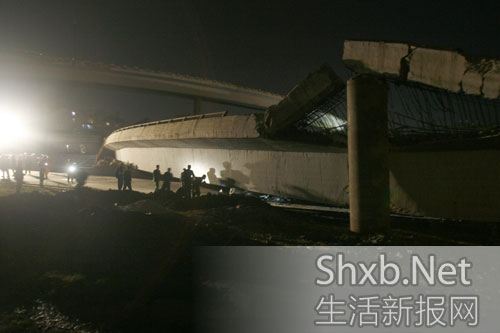 立交垮塌現場圖。來源:生活新報網 記者 張訓武攝