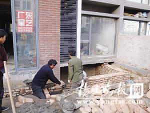 下午,記者來(lái)到萬(wàn)達(dá)紫金明珠小區(qū)。進(jìn)了大門一直往里走,36幢就在路邊上,施工現(xiàn)場(chǎng)一目了然。這里一樓的住戶都有院子,正在施工的那家人,院子門口有施工人員進(jìn)進(jìn)出出。湊近了看,院子里堆滿了磚塊、水泥,幾個(gè)施工人員正在砌磚、刷墻,忙得熱火朝天。正如網(wǎng)上的照片,這家房屋的正下方被打空了,形成一個(gè)長(zhǎng)方形的大坑,約有2米多深,也就是所謂的“地下室”。