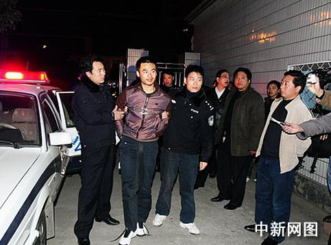 12月10日凌晨在文集鎮(zhèn)胡港村劫財殺人的犯罪嫌疑人黨奎,在逃往武漢轉(zhuǎn)車潛逃外地途中,被公安民警抓獲。圖為當(dāng)晚7點50分,黨奎被公安民警押回到鐘祥時的情景。 攝影:趙云福