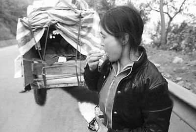 累還只是一小問題,吃飯、睡覺更難解決。為減少開支,每人一天最多吃兩頓飯。臨行前,每家都準備了幾箱方便面,不過,因為沒有熱水,方便面大都被干啃下肚。睡覺是走到哪睡到哪——男人讓出車廂在公路邊上打地鋪,女人小孩在車廂內(nèi)將就。洗臉、洗頭,更是奢望。十多天下來,每個人的臉和手都已干裂,風(fēng)刮得生痛。