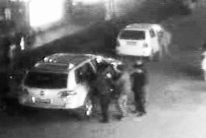 5人將關(guān)鍵塞進(jìn)一輛轎車。監(jiān)控錄像截屏圖