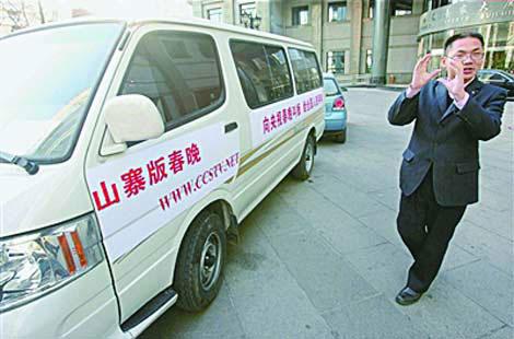 “向央視春晚叫板,給全國(guó)人民拜年”,并標(biāo)了山寨春晚網(wǎng)址。11月28日,北京一小區(qū)的樓下,一輛寫有挑釁口號(hào)的面包車非常惹眼。這輛“牛車”車主四川小伙老孟說,要自辦一場(chǎng)草根參加的山寨版春晚,時(shí)間與央視春晚同步,通過網(wǎng)絡(luò)直播,目的就是向央視春晚叫板。
