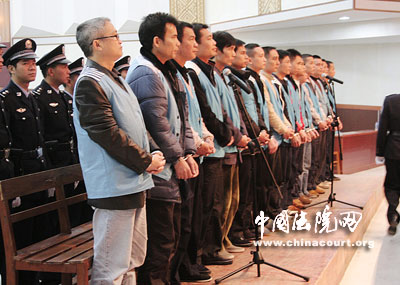 12月16日,廣西靖西縣人民法院在田陽公開開庭審理以被告人陸進(jìn)猛為首的涉嫌黑社會性質(zhì)團(tuán)伙犯罪案件。該案被提起公訴的被告人多達(dá)16人,涉及組織、領(lǐng)導(dǎo)、參加黑社會性質(zhì)組織、尋釁滋事、故意傷害、故意毀壞財物等4宗罪名。