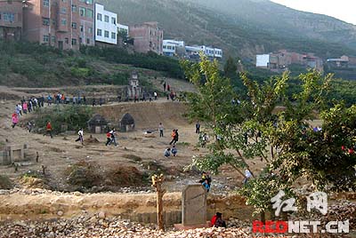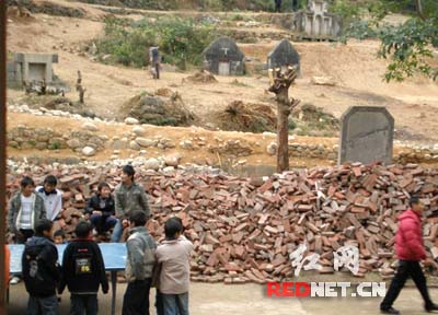 這所學(xué)校的張校長(zhǎng)感到挺無(wú)奈,原來(lái),由于占地40畝的新操場(chǎng)明年才能建成投入使用,為了不耽誤學(xué)生的體育課,因此臨時(shí)啟用了這片空地作為操場(chǎng),這塊空地,是打算用來(lái)修教師宿舍的,因?yàn)榘串?dāng)?shù)亓?xí)俗,墳只能在農(nóng)歷二十四節(jié)的“大寒”期間才可動(dòng)遷,因此,這些還未遷走的墳?zāi)棺钜惨鹊矫髂?月下旬才能遷走。