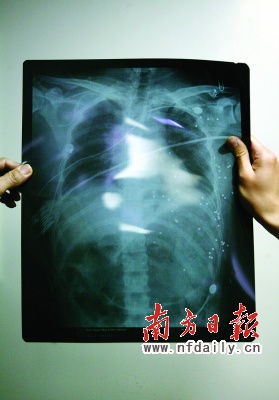 ×光片顯示周雙明的體內(nèi)約有小彈丸百余顆。楊曦攝
