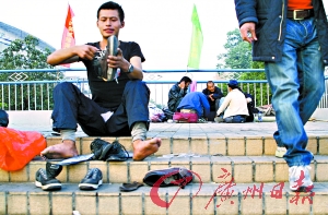 最近,“軍心”渙散了。老頭和小軍準(zhǔn)備到海南闖一闖,小路也有心同行。李練因?yàn)楹屠项^鬧了點(diǎn)矛盾,被剝奪了入伙南下的資格。其實(shí)李練也不想走。他想在春節(jié)期間攢下自己的“第一桶金”,然后擺個走鬼檔做點(diǎn)小生意。除了解決吃飯問題,還能有個床位,睡個安穩(wěn)覺。(文/記者石善偉、何有貴 圖/實(shí)習(xí)生劉雷 記者喬軍偉)