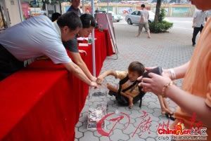 2008年5月12日下午,汶川地震爆發(fā)。在廣州華樂街的支援抗震救災(zāi)募捐活動(dòng)中,一個(gè)用手走路的乞丐,來到現(xiàn)場說“我要捐款”。