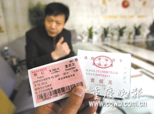 王柏華是恒天無極照明西南總代理的副總經(jīng)理。王介紹,年前他到貴州銅仁招商,元旦當天和朋友陳先生一起在銅仁買了兩張從銅仁到重慶的K586次列車短程票,無座。