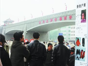 從新疆來西安游玩的小王,一出火車站出站口,沒注意到城墻上“歡迎來到古都西安”的大幅字體,反而對(duì)警方在出站口張貼的大幅“查找尸源”的公告感起了興趣,“你們西安不會(huì)這么不安全吧!”前來接他的西安朋友無言以對(duì)。