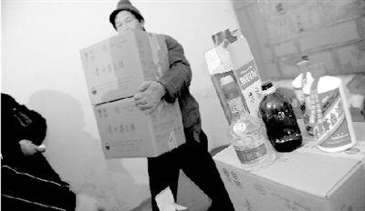 當(dāng)日,在淮河路西環(huán)道邊上的老年公寓東側(cè)一處民房的一樓,遠(yuǎn)遠(yuǎn)就能聞到一股濃烈的酒曲氣味兒。工商人員正在兩間民房?jī)?nèi),點(diǎn)查大量的“茅臺(tái)酒”,屋內(nèi)堆滿(mǎn)了寫(xiě)著“茅臺(tái)酒”字樣的箱子,里面已裝滿(mǎn)了“成品酒”,一角放著兩個(gè)塑料大桶,盛滿(mǎn)剛調(diào)好的酒,酒桶邊上放置著一暗色瓶子。半瓶液體經(jīng)鑒定,確認(rèn)是劇毒農(nóng)藥敵敵畏。“這專(zhuān)門(mén)用來(lái)調(diào)酒出味兒的。幾年來(lái),就有不少人喝假酒喝死的,太可怕了!痹趬翘帲ど倘藛T又發(fā)現(xiàn)另一滿(mǎn)瓶未開(kāi)封的敵敵畏農(nóng)藥。