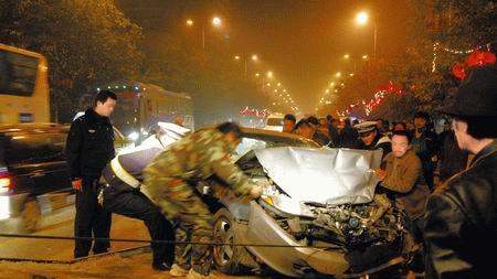 當晚,交警經(jīng)過調查初步認定,事發(fā)時,來自外地的三菱車是從白塔嘉陵江大橋向嘉陵區(qū)到武勝縣方向,在濱江大道處越過雙實線超車,與相對行駛的一輛馬自達轎車發(fā)生擦掛,引發(fā)馬自達轎車與一輛出租車相撞。此后,出租車又與后面一輛黑色轎車相撞,而外地來的三菱車在與馬自達轎車相撞后,向前沖出15米,又與一輛尼桑車發(fā)生相撞,兩車均損毀嚴重。