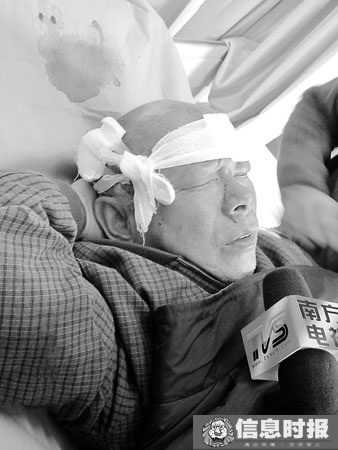 搭乘36路車的黃叔在家人陪伴中接受治療,他說:“我在黃石路總站上的車,往南開接近盈翠華庭公交站時,突然發(fā)現(xiàn)當(dāng)班司機(jī)開快車,飛越該站后又加大油門,我也是司機(jī),估計當(dāng)時時速達(dá)80公里以上,按經(jīng)驗(yàn)感覺到肯定會出事,就緊緊握緊座椅扶手,司機(jī)飛站后不久,就在柯子嶺公交站附近撞上66路,我眼部受了傷,醫(yī)生給縫了8針,幸運(yùn)沒被撞個腦震蕩,否則這個年齡就慘啦!”