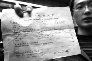 “我覺得銀行應(yīng)該有責(zé)任!眲⑾壬f,這是第一次從自動取款機上取到假鈔。昨日,銀行經(jīng)理告訴他,以銀行的技術(shù)不可能出現(xiàn)這種問題,并將劉先生的假鈔收繳了。 (記者 葉婧)
