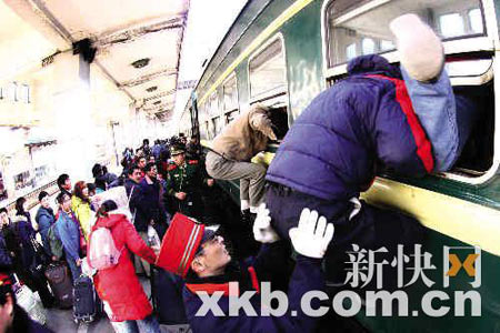 對于很多坐火車回家的買到火車票已經(jīng)是一件幸事,還有不少網(wǎng)友在為買票撲騰和痛苦。網(wǎng)友“FBI阿磊”講述了一個(gè)諷刺故事:“在公交車?yán)锫牭絼e人打電話到電臺點(diǎn)歌,有一個(gè)男人打電話進(jìn)去說:‘我是外地人,現(xiàn)在回家的車票買不到了,只好在廈門過年。我想點(diǎn)首歌!鞒秩藛査骸阆朦c(diǎn)歌送給誰?’他回答道:‘我想點(diǎn)一首陳小春的《算你狠》,送給鐵道部工作人員以及所有票販子!