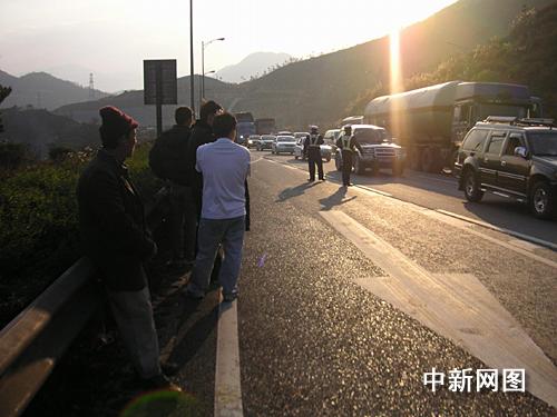 當(dāng)日下午16時30分,位于京珠高速公路廣東韶關(guān)段北行K51公里處,18名農(nóng)民工集體走上高速路面,導(dǎo)致北行車流被堵。京珠高速交警大隊(duì)接報后,立即將情況上報韶關(guān)市公安局和交警支隊(duì),同時派出警員緊急趕赴現(xiàn)場處置。