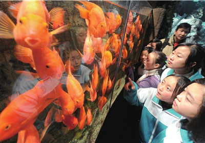 昨天,36名來自四川青川地震災區(qū)的初三學生來到北京海洋館,與海獅、海豚近距離接觸。