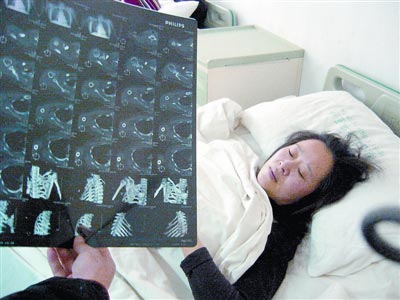 正月初三,只為勸阻不要在公交車旁燃放煙花爆竹,市公交集團(tuán)四公司585路調(diào)度員陳紅莉竟被打得腰椎骨裂、肋骨骨折。昨日,陳紅莉躺在病床上,向記者訴說心酸的一幕。