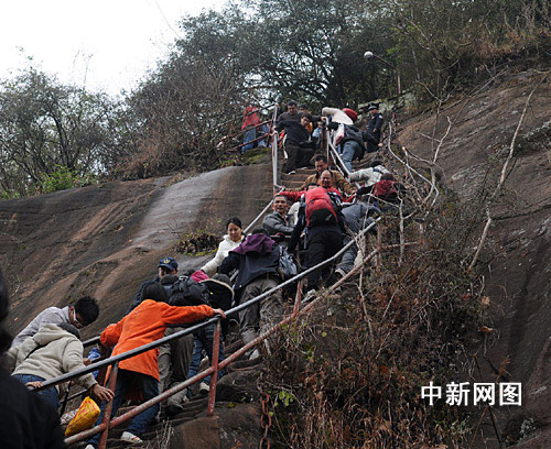 記者在登山的時(shí)候,發(fā)現(xiàn)了一撥來自四川災(zāi)區(qū)的同胞們也趕至丹霞山慶新年。他們是曾氏家族、四世同堂30多人浩浩蕩蕩地開著五部車從成都慕名來到丹霞山,他們?cè)谶@雄偉壯觀的丹霞美景的面前,也許下了對(duì)四川、對(duì)祖國(guó)的美好新年祝愿:“丹霞最美、丹霞最牛、四川雄起、祖國(guó)昌盛”!