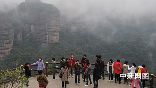 中新網(wǎng)韶關(guān)1月31日電(馮昶 劉加青 李正紅)從大年初五起,由于天氣轉(zhuǎn)好,廣東韶關(guān)市丹霞山風(fēng)景區(qū)出現(xiàn)美麗的云海景觀,吸引眾多游客觀賞,景區(qū)接待持繼升溫。據(jù)統(tǒng)計(jì),昨日共接待游客近2.6萬(wàn)人次。自助自駕游游客劇增,同比增長(zhǎng)一倍半以上,其中有不少來自四川災(zāi)區(qū)的民眾。