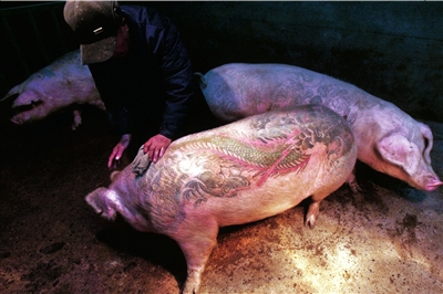 在北京順義區(qū)小店村,瑞士藝術(shù)家威姆德沃伊創(chuàng)建了一個“藝術(shù)農(nóng)場”:給一群豬文身,然后將之作為威姆德沃伊的“作品”高價賣出,每頭豬能賣到70萬到100萬元人民幣。這種聞所未聞的“創(chuàng)作”因此引來了爭議。