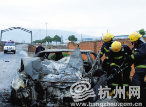 昨天凌晨2時(shí)40分左右,一輛銀灰色海馬轎車先后撞上隔離墩、水泥的龍門架橋墩、路邊圍墻,隨后轎車起火。車上6個(gè)年輕人,5死1傷。