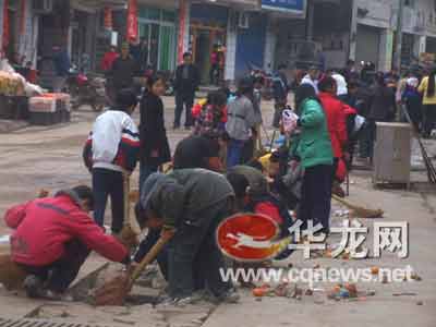 記者在現(xiàn)場(chǎng)看到,現(xiàn)場(chǎng)用手撿垃圾的全是學(xué)生,而政府工作人員、居委會(huì)干部、機(jī)關(guān)干部和街道居民,則站在旁邊旁觀,樣子象看熱鬧似的。一位著工商制服的旁觀者,指著已經(jīng)打掃干凈的街道和尚未填平的水溝對(duì)記者稱(chēng):“你看,學(xué)生們做衛(wèi)生就是好,打掃得相當(dāng)干凈。”