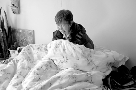 “我昨晚上是被凍醒的……”市民李女士說,20日晚,她在睡夢中被凍醒!皬19日晚上開始,我們家屋子里面的暖氣片就幾乎是涼的了!痹诮鸷踊▓@小區(qū),一居民一家三口擠在一張床上身穿棉衣、蓋著棉被看電視,溫度計上顯示屋里的溫度僅為7℃。