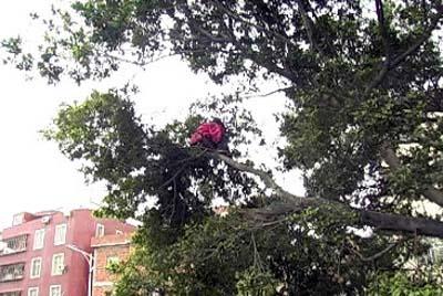 樹枝離地三四米,地上都是來來往往的車流,摔下來,肯定出大事。謝先生一想,就報(bào)了警。