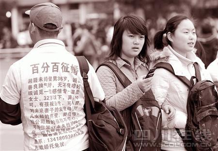 中午1點半,中環(huán)廣場門口來來往往的人群中,白色短袖T恤的王錫國突然出現(xiàn),吸引了不少人的目光。“快看,那里有個征婚的!薄斑@人好奇怪,這樣也能征到對象?”王錫國倒也大方,身體不斷調(diào)整方向,展示背上T恤印的文字。