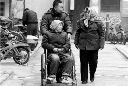 街坊們經(jīng)常用各種辦法幫助這個家:女兒的學費是鄰居們湊的,經(jīng)常給他們送衣服、送飯,為了能讓曹青云站起來,還幫他們申請了全額低保,拉到贊助單位幫她定做了一個輪椅。