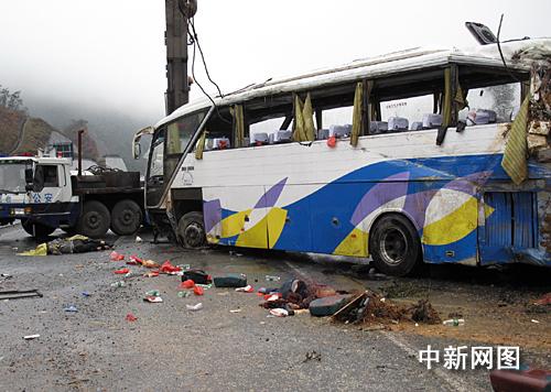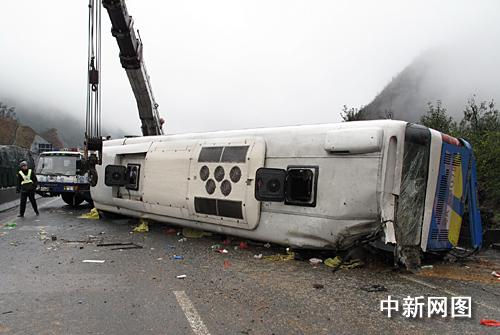 據(jù)韶關(guān)警方稱:這輛牌號(hào)為粵AC00七九號(hào)豪華大客車(司助兩人),是六日凌晨五時(shí)從廣州羅崗搭載游客四十人(其中一名導(dǎo)游)前往湖南衡山的。于八點(diǎn)五十分途經(jīng)京珠高速公路粵北段北行三十七KM處時(shí),車輛碰撞右側(cè)花基后向左側(cè)翻,造成駕駛員岑權(quán)(男)及兩名乘客(一男一女)當(dāng)場死亡,無人員重傷,十七名乘客輕微傷(均已送醫(yī)院檢查治療)的交通事故。