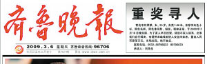 3月5日至3月6日,包括山東青島的《半島都市報(bào)》、濟(jì)南的《齊魯晚報(bào)》均在頭版刊登了《重獎(jiǎng)尋人》廣告,此外,包括3月6日的青島交通臺(tái)也在播放這則尋人啟事。