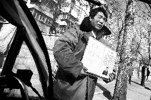 昨天上午9時(shí)許,四路通路口,一名裹著軍大衣的男子,在晨風(fēng)中舉著一塊貼著尋人啟事的木板,站在路邊不斷向過往行人詢問:“這是我走丟的老婆,有沒有見到過!蹦景迳腺N著兩張紙,一張是尋人啟事,附有照片,另一張寫著“尋妻,懸賞6000元”。